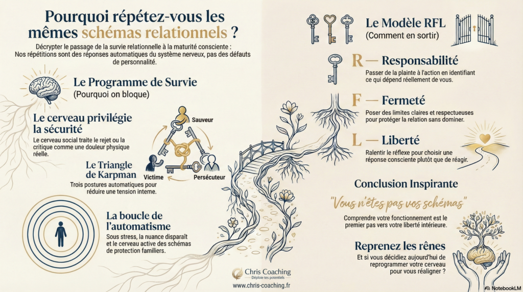 Lorsque vous comprenez le rÎle que votre cerveau active pour se protéger, vous pouvez commencer à créer plus de recul, plus de conscience⊠et donc plus de liberté dans vos relations.